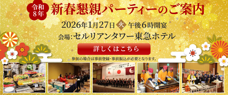 「令和8年一般社団法人東京広島県人会新春懇親パーティー」を下記にて開催いたします。
