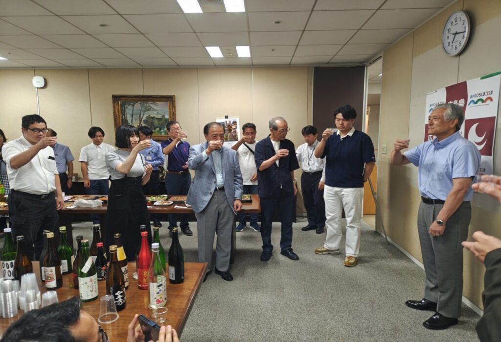 第2部では、広島のお酒を18種類準備し、軽食を取りながら、参加者による自己紹介タイムや歓談タイム、抽選会が設けられました。軽食では、ケータリングや広島菜漬物、呉のソウルフード「がんす」もあり、皆様和気あいあいと楽しい時間を過ごしました。